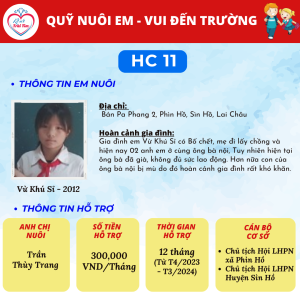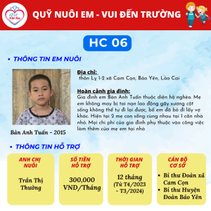 “Xin trân trọng cảm ơn Anh Chị đã quyết định tham gia QUỸ NUÔI EM – VUI ĐẾN TRƯỜNG và đặc biệt cũng như may mắn đối với EM NUÔI đã được ANH CHỊ NUÔI lựa chọn trợ duyên. Để xem chi tiết Mã Em Nuôi – Anh Chị Nuôi, xin vui lòng mở link bên dưới để cập nhật”.
