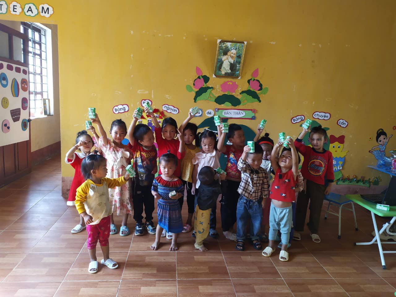 Nghe cô giáo kể, mỗi khi cô chở sữa về điểm trường là các con tíu tít, ùa ra reo hò, vỗ tay “#có_sữa_rồi, #có_sữa_rồi” mà chúng em thực sự vừa vui vừa thương các con quá!
