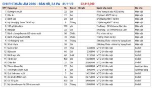 Bảng kê các hạng mục chi tiết cùng các hóa đơn thanh toán em xin để ở từng ảnh. Có phần nào cần làm rõ hoặc em có nhầm lẫn thì cả nhà báo em với nhé