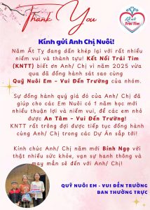 Năm mới Bính Ngọ sắp tới, thay mặt cho Ban Thường Trực nhóm Kết Nối Trái Tim, em xin được gửi lời cảm ơn chân thành tới các Anh Chị Em – những Mạnh Thường Quân, các Cán Bộ Cơ Sở và các ACE thành viên nhóm KNTT, những người – những gam màu rực rỡ đã tô thắm con đường mà KNTT đã và đang đi, trên Hành Trình Kết Nối và Thắp sáng tri thức vùng cao ❤️ Là người phụ trách chính của nhóm, người trực tiếp kết nối và triển khai các HTKN và các Dự án, hơn ai hết em thấu hiểu và vô cùng biết ơn những sự đóng góp, hỗ trợ và động viên của cả nhà! Có những trợ duyên rất lớn, cũng có những trợ duyên thật nhỏ, những ủng hộ 10k-15k, hoặc thậm chí chỉ là 1 lời động viên trong giai đoạn khó khăn… Dù lớn hay nhỏ, mỗi sự trợ duyên đều có ý nghĩa to lớn đối với các Hành trình bền bỉ mà KNTT chúng em đang đi ❤️ Bằng tất cả sự trân trọng và lòng biết ơn, chúng em xin kính chúc các ACE cùng gia đình năm mới Bính Ngọ thật nhiều sức khoẻ, vạn sự bình an và may mắn!