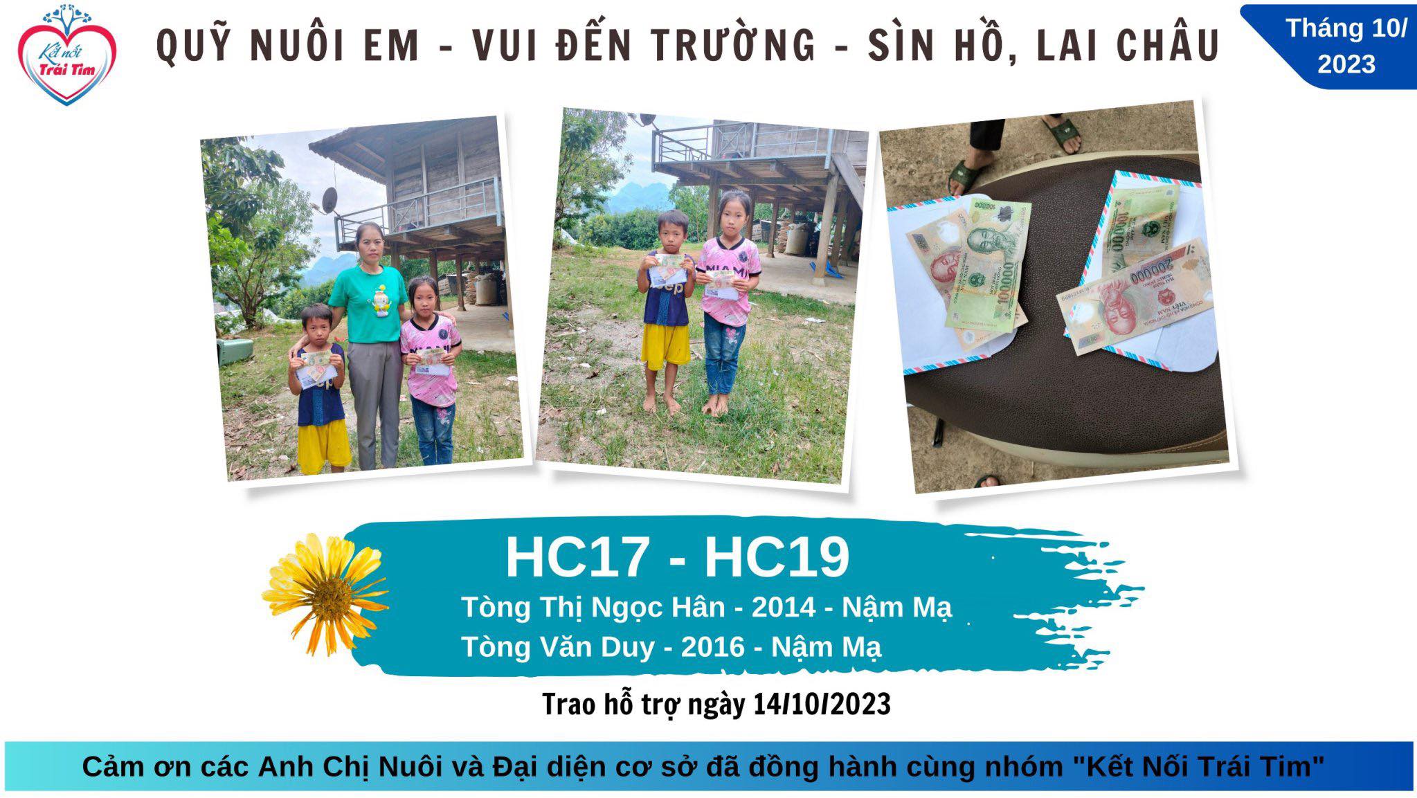HC33: Em Liều Thị Vang sinh năm 2018, hiện tại đang học mẫu giáo lớp 5 tuổi tại điểm Trường Mầm Non bản Can Tỷ 1, hàng ngày đi bộ từ nhà đến trường khoảng 2km. Gia đình em có 03 nhân khẩu là mẹ và chị gái Liều Thị Sinh – 2016 (đang học lớp 2 tại trường tiểu học Ma Quai), bố mẹ em đã ly hôn, Hai chị em ở cùng với mẹ, gia đình em thuộc diện hộ nghèo trong xã. Mẹ em bị bệnh xương khớp và thường xuyên đi làm ăn xa nên hai chị em sang ở cùng bà ngoại. Bà ngoại cũng đã già yếu. Kinh tế rất khó khăn.