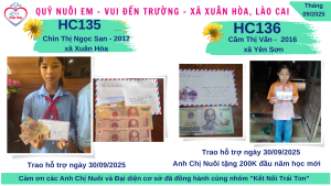 Nhóm Kết Nối Trái Tim xin được gửi báo cáo Quỹ Nuôi Em – Vui Đến Trường tháng 09/2025.